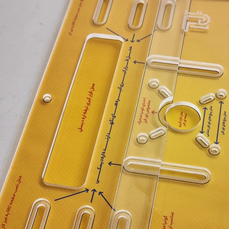 تبدیل اره دیسکی به اره میزی و تبدیل اور فرز به فرز میزی  MC board همان طور که از نامش مشخص است یک نوع تبدیل است که برای تبدیل اره دیسکی به اره میزی و هم برای تبدیل اورفرز به فرز میزی می توان از آن استفاده کرد. این محصول برای همه مدل اورفرز, اره دیسکی و فرز مشتی قابل استفاده می‌باشد. داراری گونیا متحرک دو حالته ( مورد استفاده برای اره دیسکی و اور فرز )  این مدل تبدیل شامل یک صفحه پلکسی با اکرولیک بالا و با بهترین متریال و کاملا نشکن با ضخامت 8 میل و مقاوم برای هرنوع ابزاری می‌باشد. این محصول به همراه 4 گیره ارائه میشه که با استفاده از این گیره می‌توان صفحه اره دیسکی را کاملا محکم نگه داشت. این صفحه دارای گونیای متحرک برای اورفرز و اره دیسکی می‌باشد. نصب این صفحه بسیار آسان است و با شش عدد پیچ روی میز ها به راحتی نصب می‌شود. اندازه گذاری لیزر شده در اطراف این صفحه می‌باشد که می‌توان به راحتی گونیای متحرک را جا به جا کرد. این صفحه تبدیل اورفرز و اره میزی امکان برش فارسی هم دارد. فاصله سوراخ های مناسب اور فرز بزرگ 8.5 سانتی متر می باشد. این تبدیل مناسب اره دیسکی هایی است که ابعاد مقطع مستطیل شکل کف دستگاه کم تر از ابعاد 38/5 در 21 باشد. میتوانید با تماشای گالری تصاویر محصول از محل قرار گیری دقیق سوراخ ها مطلع شوید